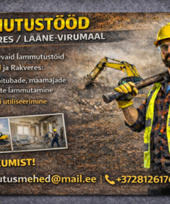Ettevõte teostab erinevaid lammutustõid lääne virumaal/rakveres.Sobivad nii korterite/vannitubade,maamajade jne lammutused.Vajadusel ka prahi utiliseerimine.Arve võimalus. Huvi korral kirjutage e-postile lammutusmehed@mail.ee või tel +37281261763.
